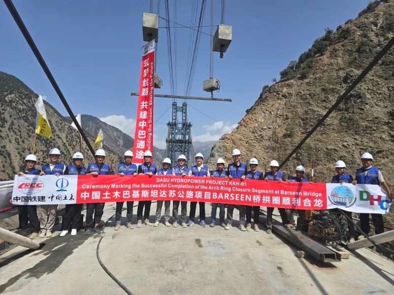 近日,由中國土木承建的巴基斯坦達蘇水電站喀喇昆侖公路改線項目傳來捷報。該國跨度最大的拱橋——巴森橋成功完成拱圈合龍,標志著大橋主體結構施工取得突破性進展,為項目整體推進及區(qū)域交通改善注入關鍵動力。