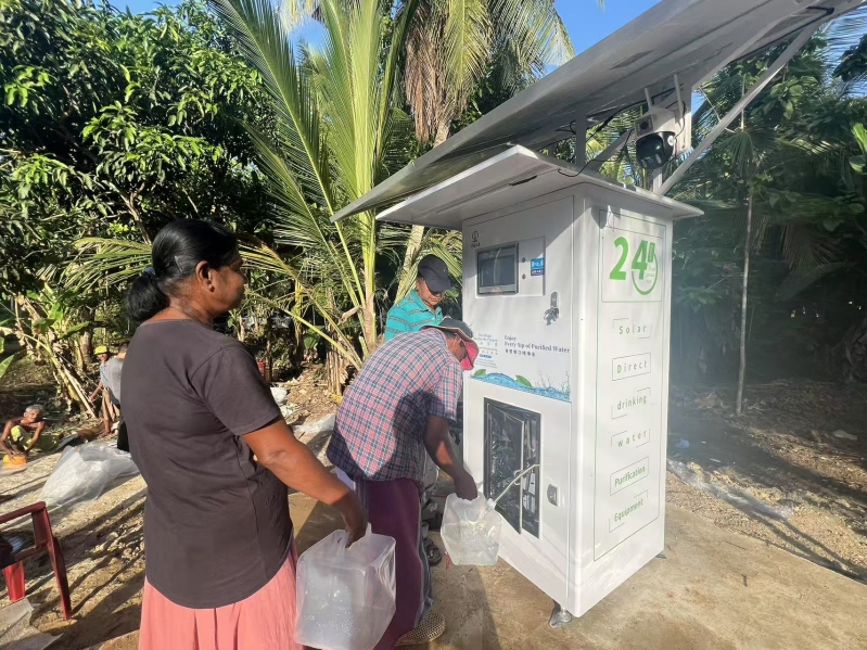 分布式供水項目是斯里蘭卡農村供水司主導的國家重點項目。本次試點主要內容為,向位于馬爾帕那沃地區的農村社區提供一臺采用太陽能供電、反滲透過濾等技術的凈水設備樣機并進行試運行。該凈水設備日產水量可達2噸,處理后水質優于本地瓶裝水標準,成功運行后將有效改善當地社區水源衛生和飲水安全問題,提升當地居民生活質量。